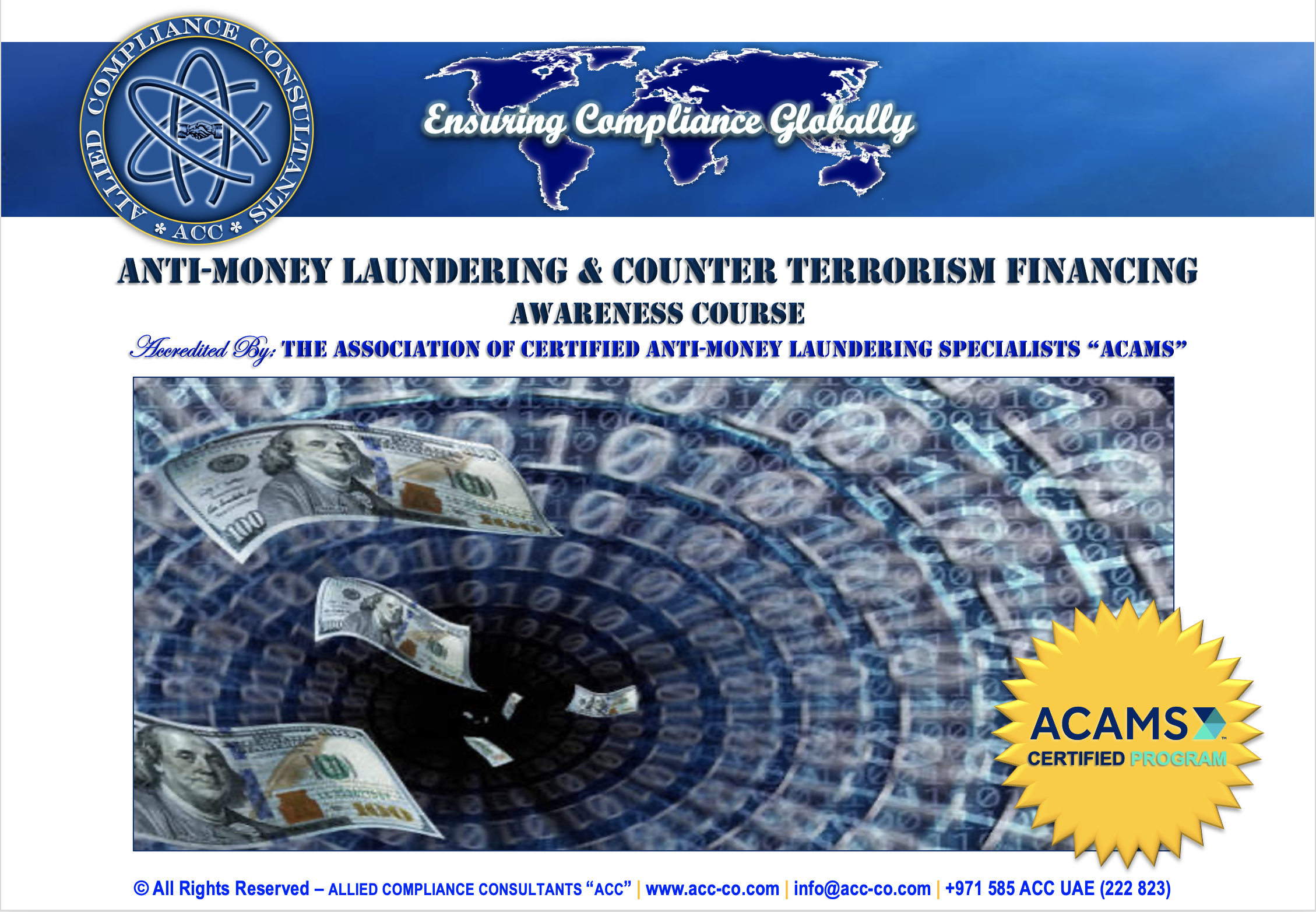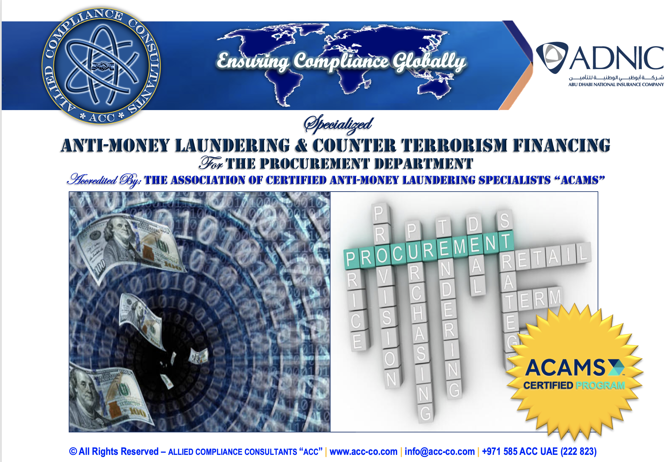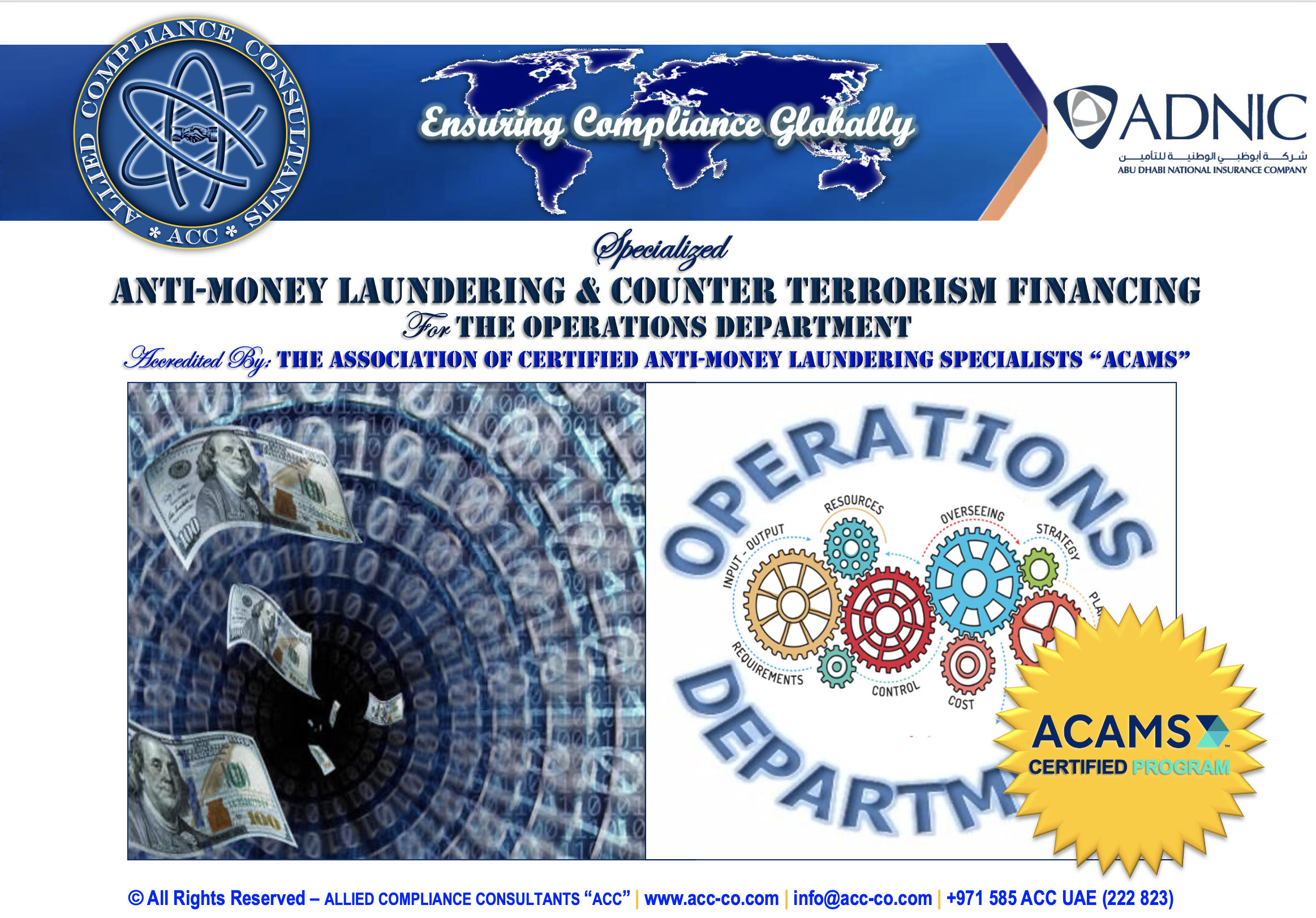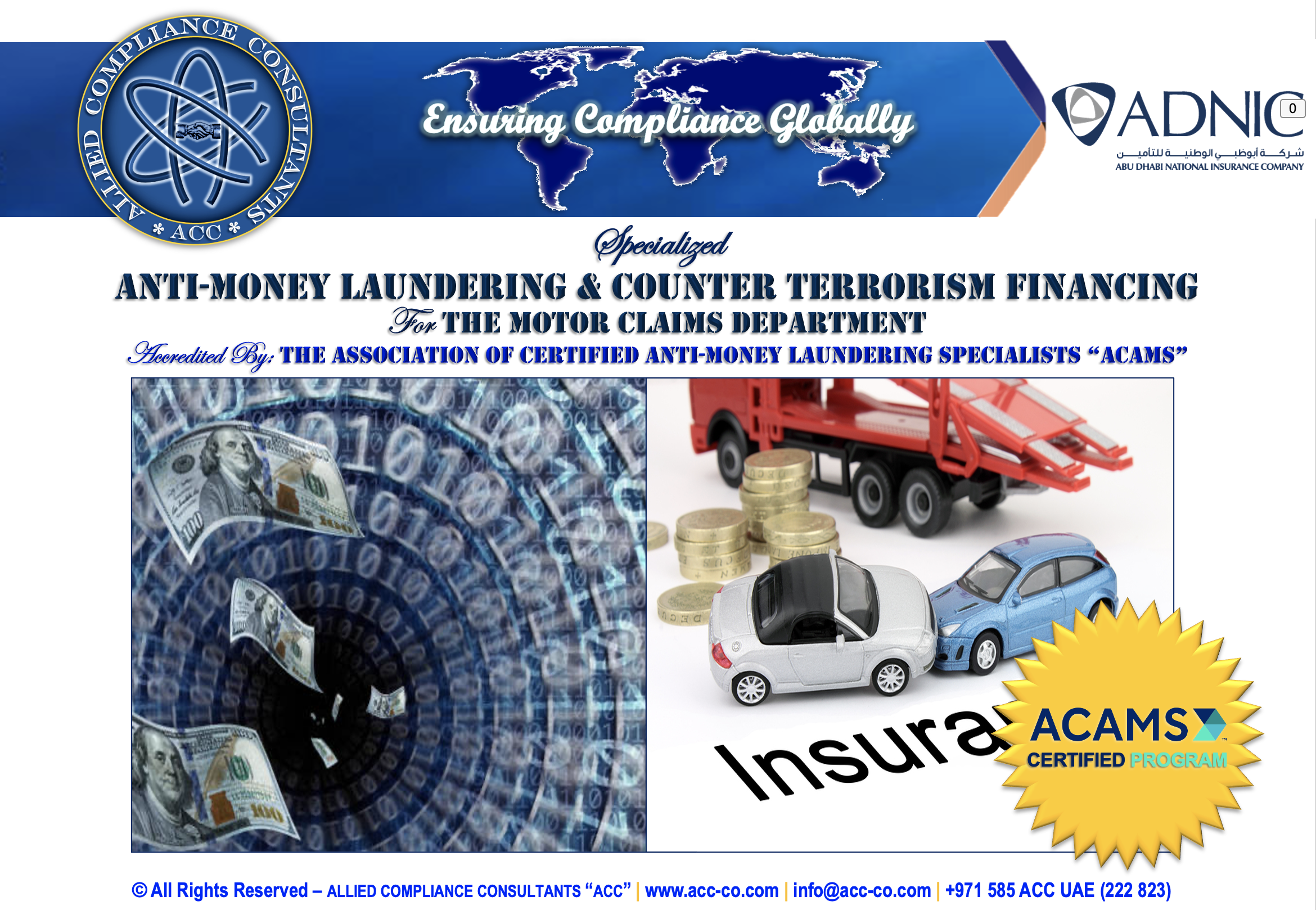 Allied Compliance Consultants “ACC” is an international professional services firm with Global Headquarters in Britain, MENA Regional Office in Dubai, a presence in 25 countries, and worldwide operations.