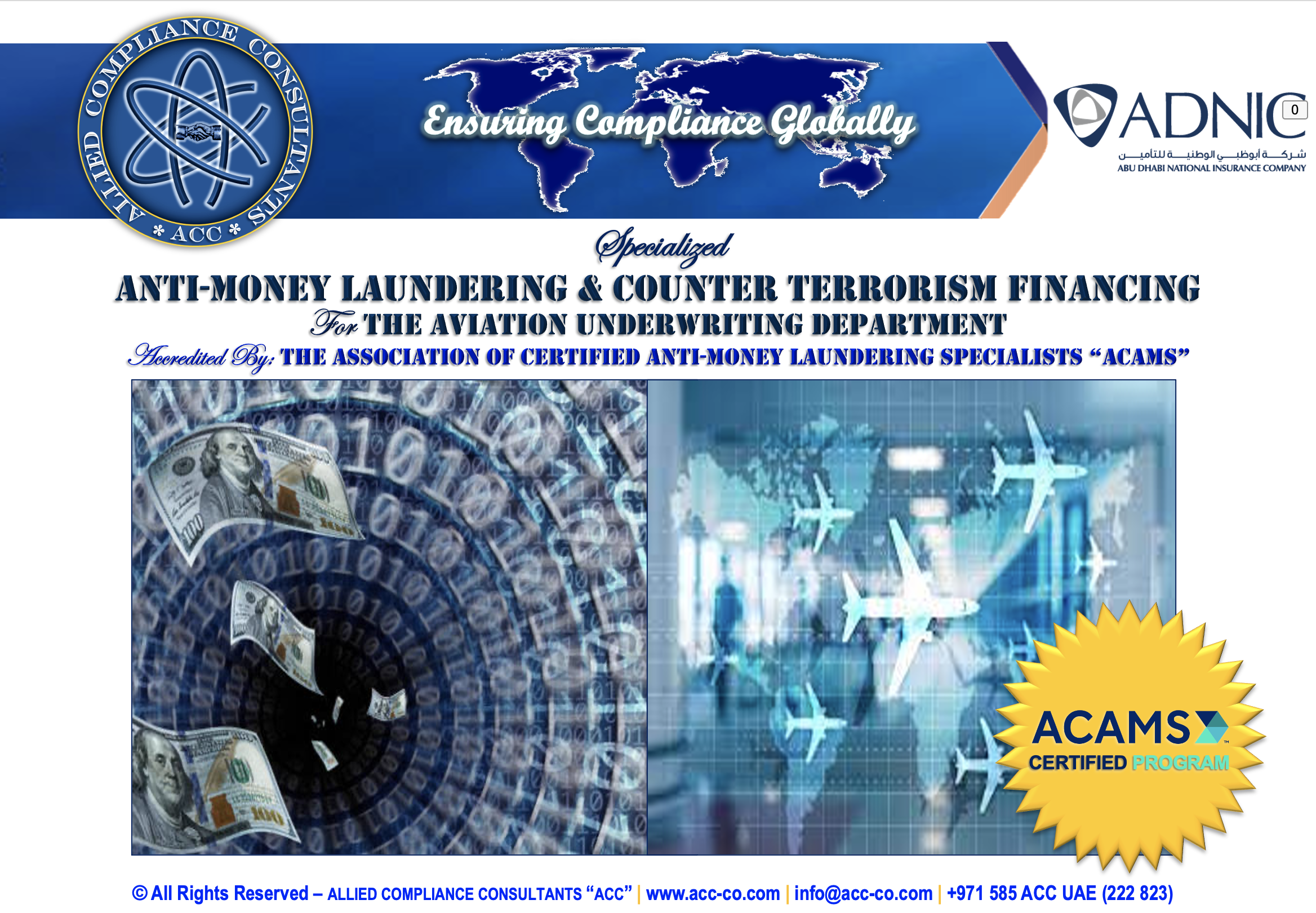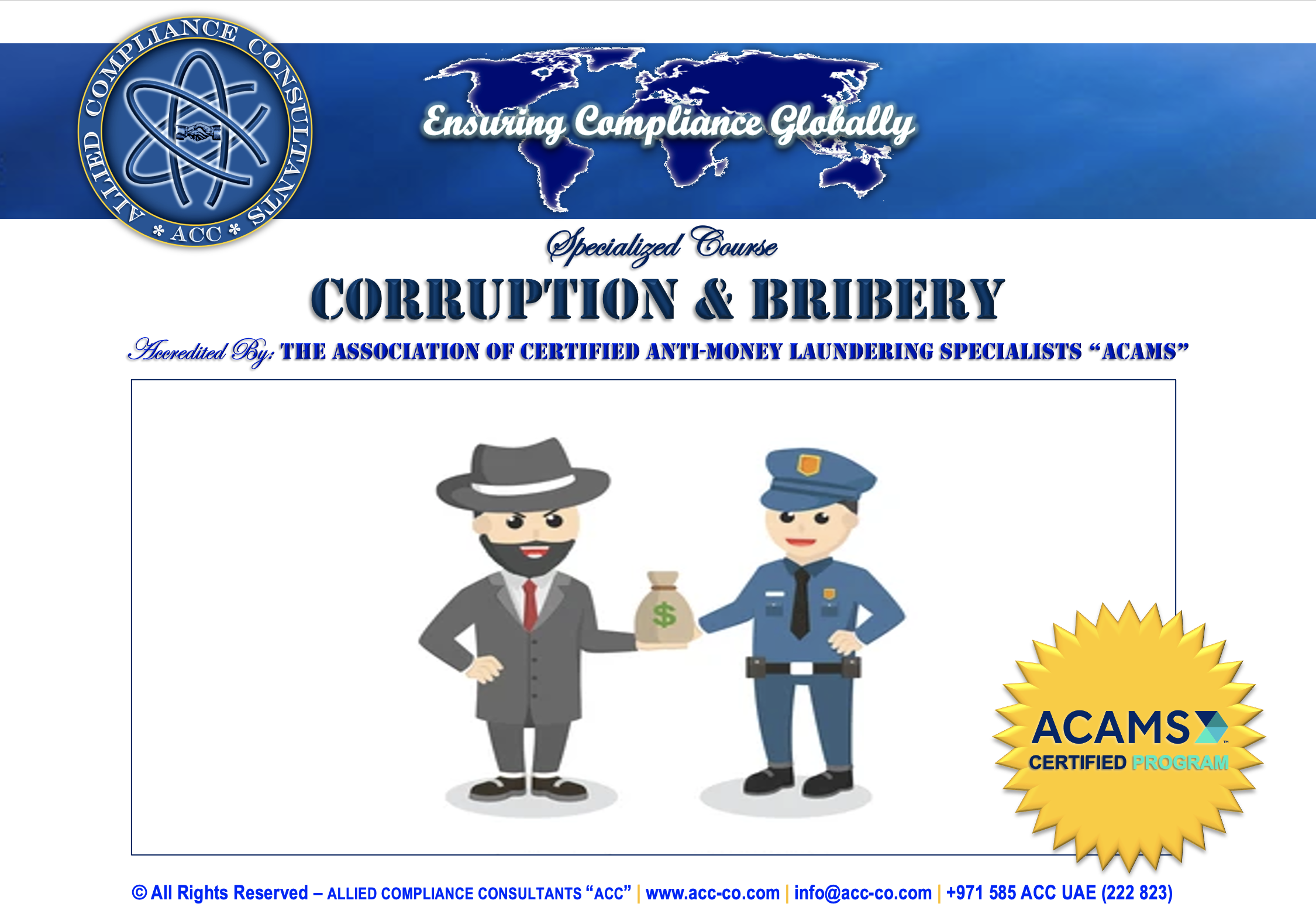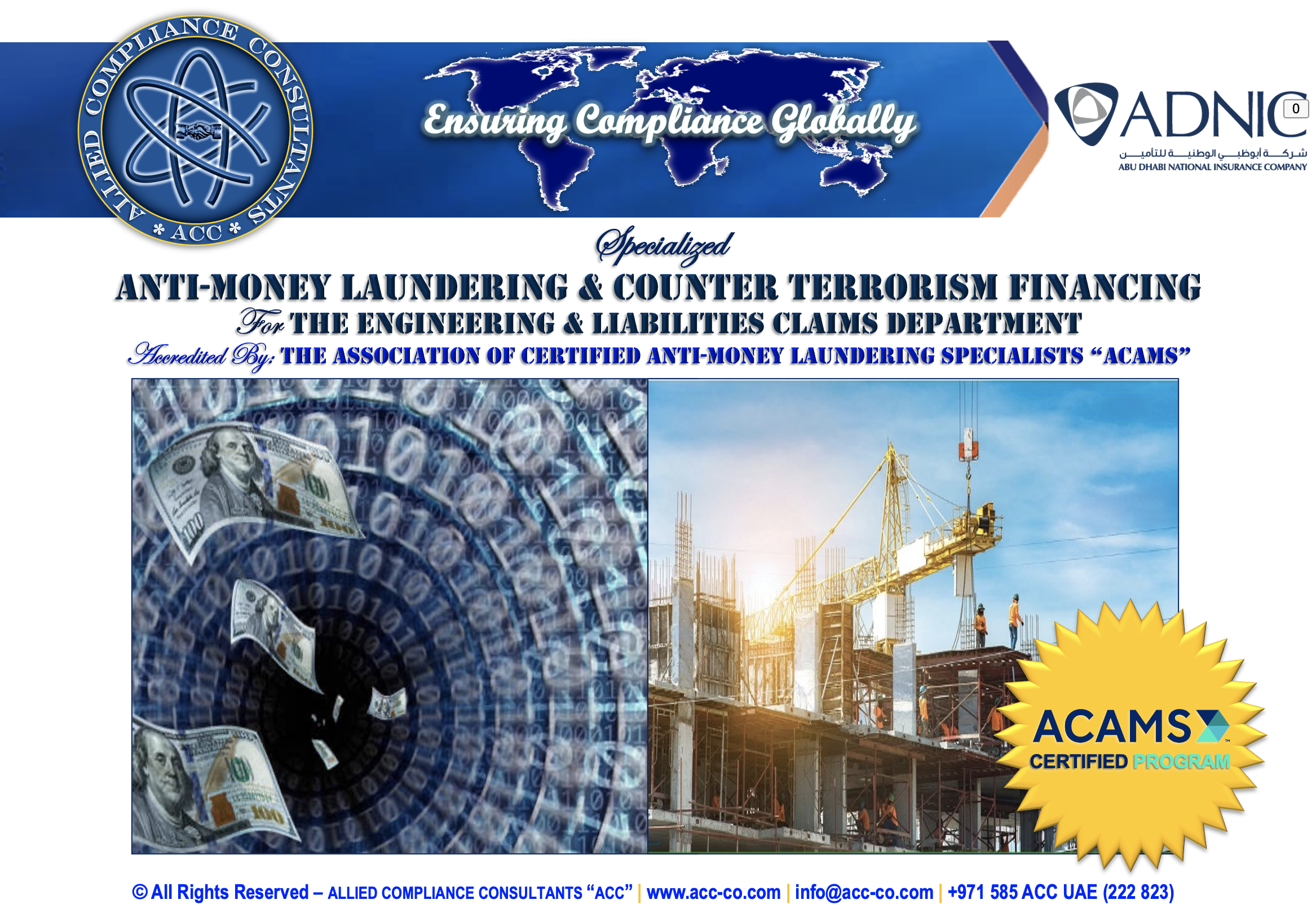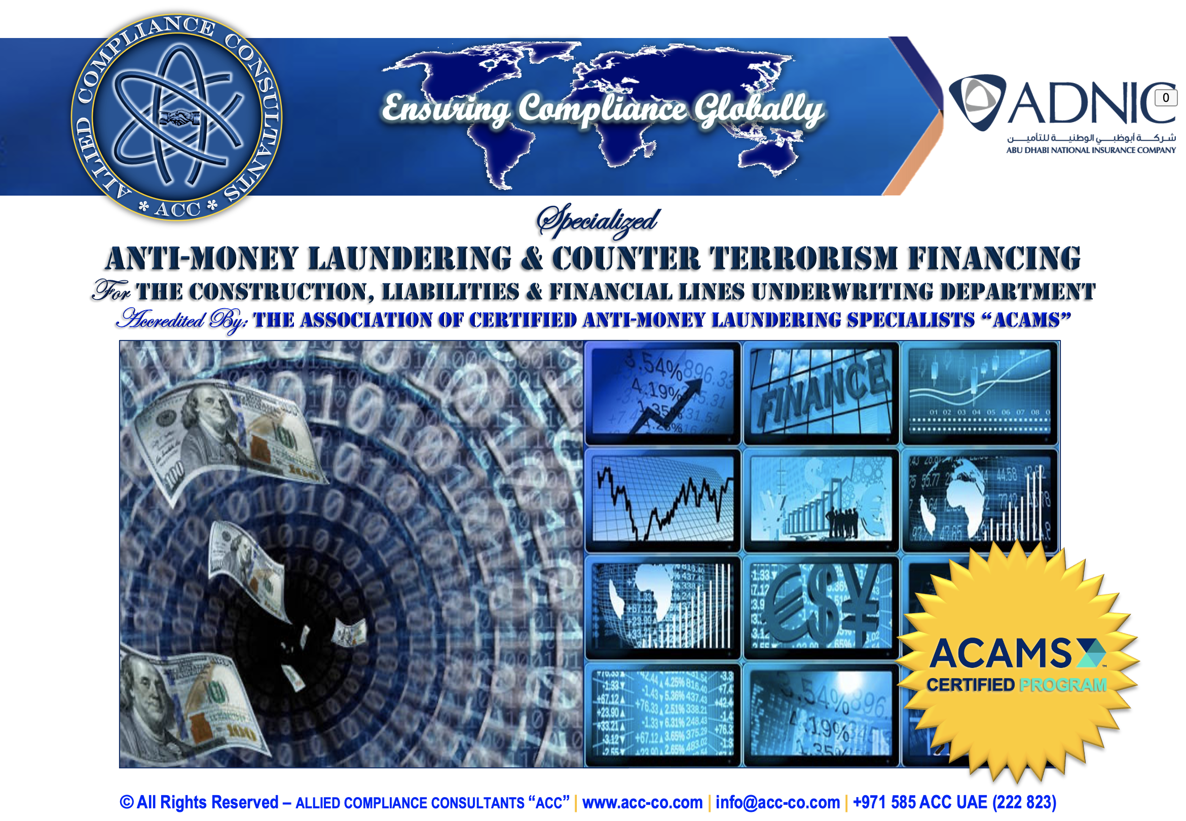 Allied Compliance Consultants “ACC” is an international professional services firm with Global Headquarters in Britain, MENA Regional Office in Dubai, a presence in 25 countries, and worldwide operations.