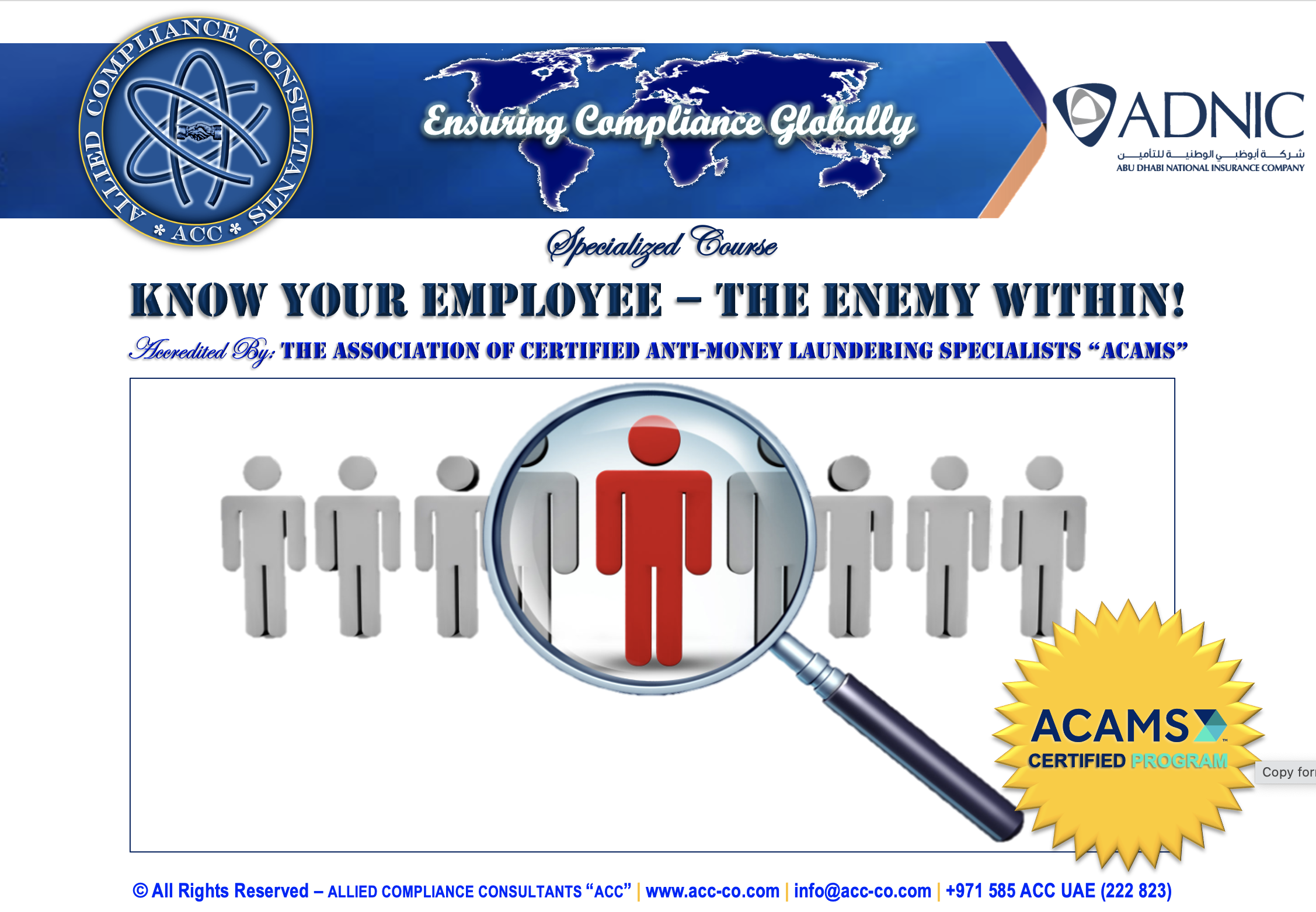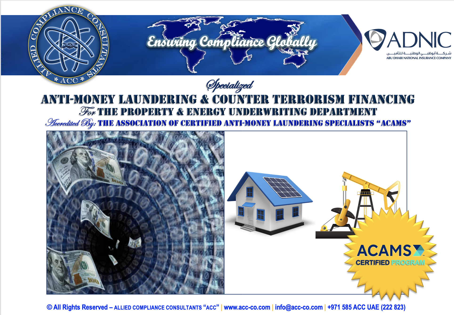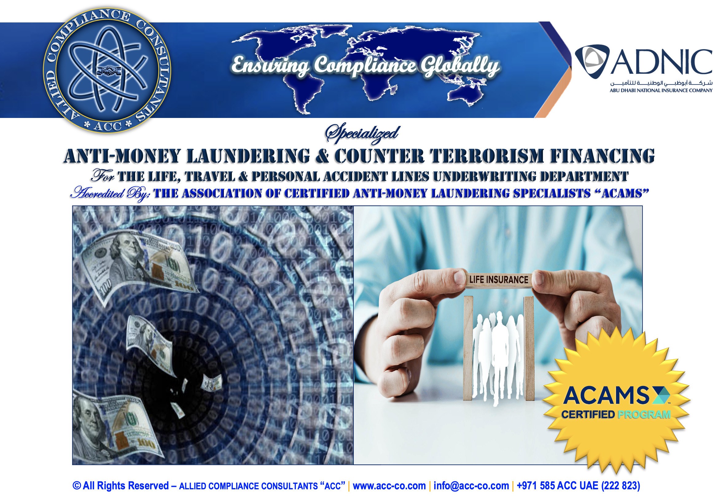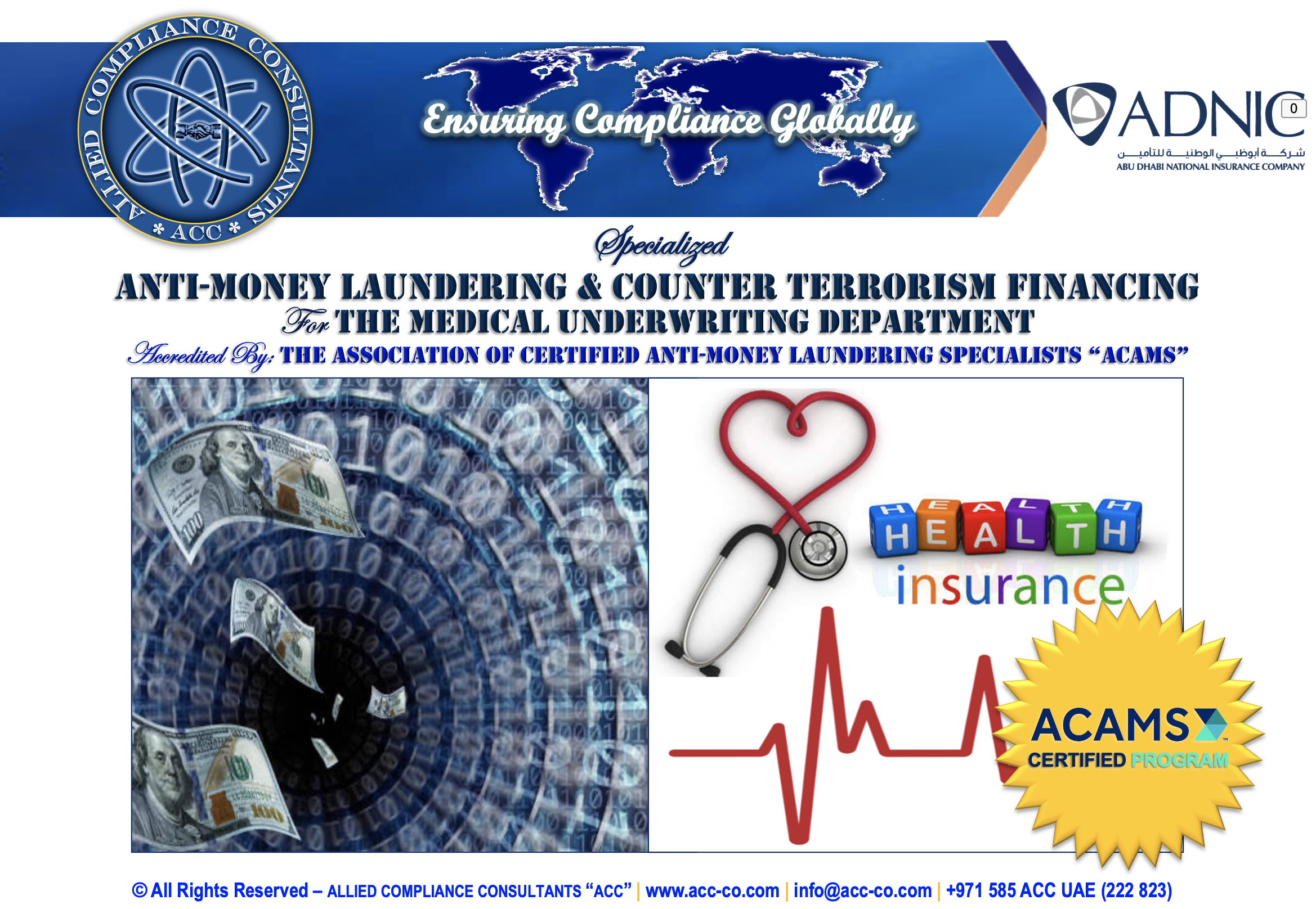 Allied Compliance Consultants “ACC” is an international professional services firm with Global Headquarters in Britain, MENA Regional Office in Dubai, a presence in 25 countries, and worldwide operations.